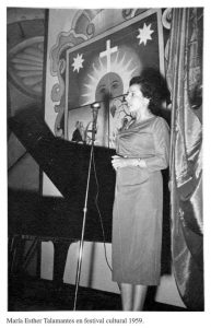 Foto: María Esther Talamantes en un festival cultural, imagen tomada de «María Esther Talamantes Perales: nuestra sufragista zacatecana», Instituto Electoral del Estado de Zacatecas.