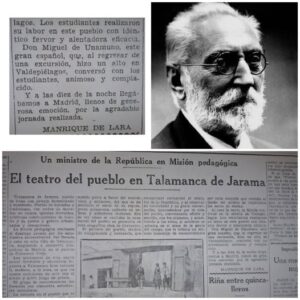 Y empezó la representación teatral con “La Carátula”, de Lope de Rueda, y terminó con “El juez de los divorcios” de Cervantes. Ese día llegó a Talamanca un ministro del Gobierno, D. Fernando de los Rios, que tuvo que volverse pronto a Madrid por las noticias de la enfermedad de su hermana.
