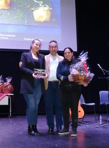 Resultaron ganadores del mismo el Bar la Cañada con su «Croquetón malpartideño» y el Hotel Los Barruecos con «Saquito de patatera», recogiendo el premio los responsables de ambos establecimientos. Seguidamente, el jurado que acababa de intervenir en la selección del Concurso gastronómico popular y que pidió «rebajar el nivel para el año que viene» pues lo había tenido extraordinariamente complicado a la hora de elegir los dos mejores platos presentados» propuso como ganadores de los correspondientes premios los presentados por Inés Gómez Hidalgo y Victoria del Moral Galán. Y a continuación se pasó a la entrega de los galardones estrellas de la noche que este año correspondieron: el de Patatera Popular a la Asociación de Folklore Virgen de la Soledad y el Patatera de Honor a la chef Pepa Muñoz. En el caso de la Asociación de folklore malpartideña se quiso hacer honor al compromiso de la misma con la tradición regional y con su pueblo, colaborando en su enriquecimiento cultural y asociativo y siendo uno de los mejores embajadores de la localidad pues allá donde van llevan nuestra música, nuestras danzas, raíces y tradiciones. Su actual presidenta Laura Ana Agúndez agradeció la concesión del galardón.