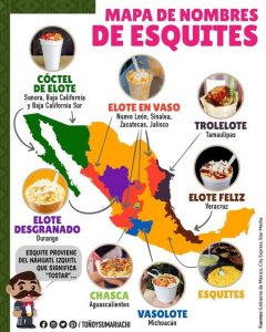 Según Wikipedia: “Los esquites son una preparación mexicana de granos de elote (maíz), generalmente hervido con sal y epazote, aunque con muchas variantes regionales. Se considera un antojito, es decir, una comida de calle mexicana, y es popular del país. Las denominaciones e ingredientes varían ampliamente dependiendo la zona donde se prepare”.