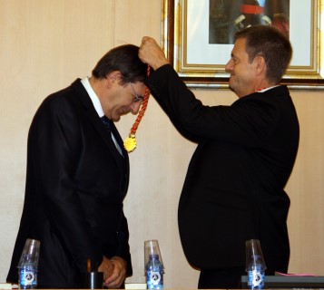 El alcalde Manuel Díez Díez impone la medalla de RAECO al cronista.