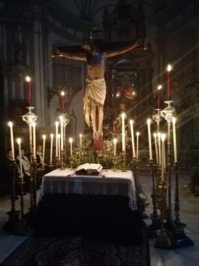 Los mayores recordarán conmigo que por hoy se ocultaban las imágenes en los templos con paños morados, para no distraer la, atención de los fieles en otras prácticas piadosas que no fueran las exclusivamente pasionales. También esto acabó por culpa de la simplista interpretación de unas inexistentes normas emanadas del Concilio Vaticano II. No he encontrado norma alguna que prohiba aquella práctica litúrgica tradicional.