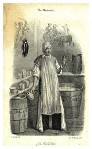 El Pulquero en “Los Mexicanos Pintados Por Sí Mismos: tipos y costumbres nacionales”, por varios autores, México, Imprenta de M. Murguía, 1854. Estampa dibujada por Hesiquio Iriarte y litografiada por Murguía y cía.