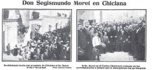 El 7 de octubre de 1905 diversos periódicos nacionales insertaban la noticia de la llegada a Chiclana del político liberal gaditano, Segismundo Moret (1833-1913), para asistir a un banquete en su honor, agasajo de los miembros de su partido en Chiclana.