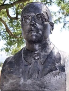 -FOTO: Busto de Javier de la Cruz Cortijo, en la plaza que lleva su nombre, junto al IES «Hércules». Chiclana de la Frontera.
