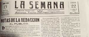 Bibliografía:-«La Semana», periódico independiente. Varios números.FUENTE:https://www.facebook.com/joseluis.aragonpanes