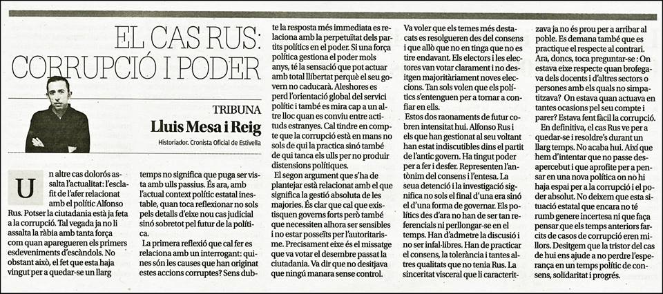 POR LLUIS MESA I REIG, CRONISTA OFICIAL D’ESTIVELLA (VALENCIA)
