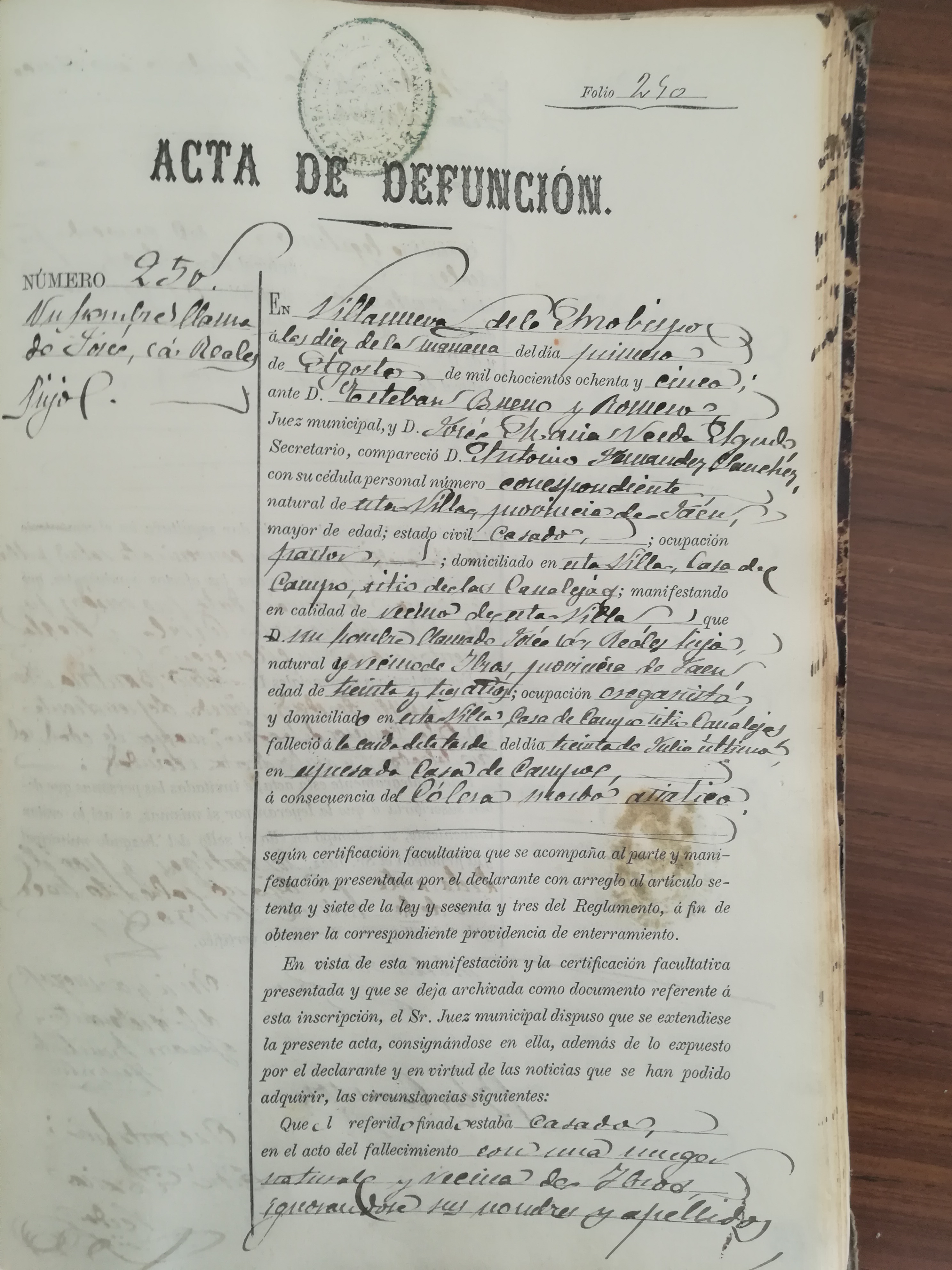 También queda aplazada la fiesta religiosa de San Miguel “Que según tradicional costumbre esta municipalidad viene costeando anualmente la fiesta religiosa que en honor a nuestra querida y santísima patrona la Virgen de la Fuensanta se celebra el día de San Miguel, pero atendiendo a que algunas poblaciones inmediatas a esta están invadidas del cólera morbo asiático y en otras como Villacarrillo e Iznatoraf hace muy poco tiempo que los partes oficiales no acusan defunciones, ni invasiones parecía prudente suspender dicha fiesta y acordar, que se celebre el día 25 de octubre y se remita oficio a los Sres. alcaldes de los pueblos limítrofes y los de Sierra de Segura. Se pida al Gobernador, para que se pueda verificar el día citado y siguiente corridas de vacas y quemar un castillo de pólvora, siendo el responsable de estas celebraciones José Nieto Quevedo el que cobra mil pesetas por las corridas de vacas y quema del castillo.