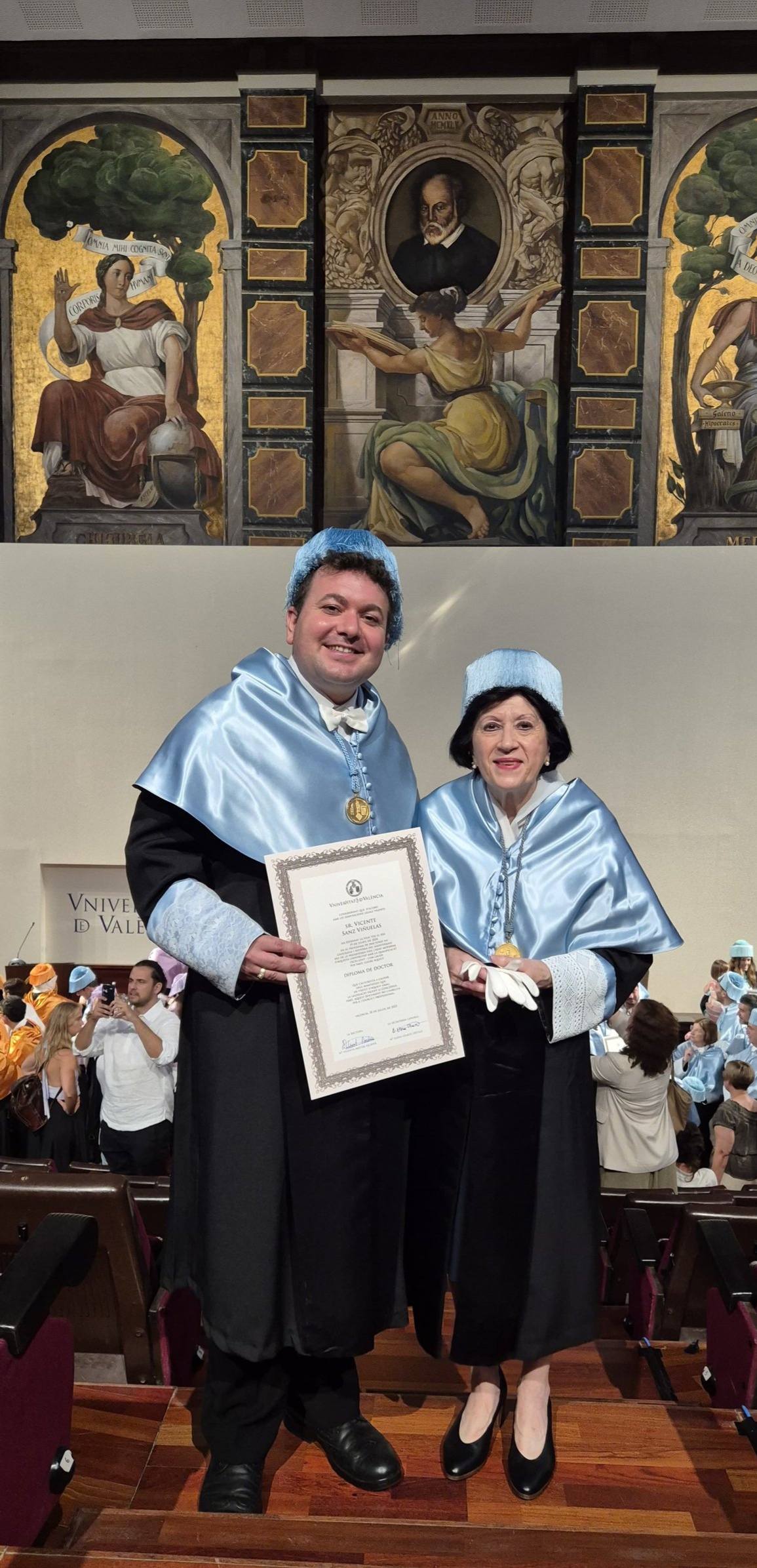 El pasado viernes, 18 de julio de 2025, se llevó a cabo el acto solemne de investidura de 64 nuevos doctores por la Universidad de Valencia, en el Aula Magna de la facultad de Medicina y Odontología. Un acto que celebra y reconoce el esfuerzo, la gran capacidad de trabajo y la vocación investigadora, así como la excelencia académica de los doctores y doctoras que defensaron sus Tesis durante el curso 2023-2024.
