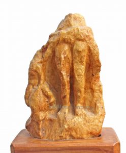 En efecto en nacimiento de Venus (la nascita di Venere) tiene lugar en el mar, siendo la espuma el medio engendrador según la mitología clásica. La figura que ya presentamos, de pequeño formato, procede del yacimiento de “Torre Águila” (Barbaño, Badajoz) y se conserva en una colección particular de Montijo. Presenta numerosos desperfectos al hallarse en tierras de labor, en fechas anteriores a la excavación. Destaca Venus que cubre púdicamente el sexo sujeto por la mano derecha. La infantil imagen de Eros cabalga sobre un delfín, situado en la margen derecha del grupo.