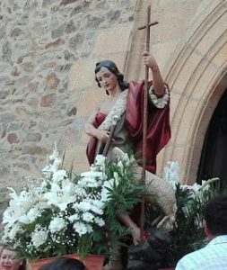 No es difícil imaginar por qué los antiguos pobladores de Madrigalejo eligieron a San Juan Bautista como patrón. Hay que pensar en su tradición agrícola y ganadera, en sus tierras fértiles para el cereal, cuyo ciclo termina en torno a la celebración de San Juan y, por tanto, es el tiempo de la recogida de la cosecha. Y también en su parte ganadera, fundamentalmente en los rebaños de ganado lanar; podemos ver en la imagen del Bautista, que va acompañado del Cordero de Dios.