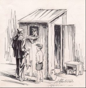 Las “oficinas” eran pequeñas casetas de madera, de un metro cuadrado aproximadamente -lo justo para una persona con un asiento- y tenían su ventana. También se llamaban de “consumo” o “garitas”.