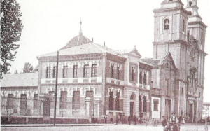 Sede original. Escuelas graduadas del barrio del Carmen, junto a la iglesia, que se convertirían en sede de la Universidad.