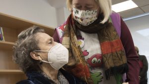 Hay un mural repleto de recuerdos, dos ramos de flores en nombre de La Corredoria y los alumnos, una placa conmemorativa y flashes de cámaras esperando. Maite entra en la sala, sin saber por qué sus compañeros le han hecho abandonar el aula donde impartía clase, y de improvisto la envuelve una oleada de aplausos. “No esperaba nada”, alcanza a decir entre alguna que otra lagrimilla: “cómo me habéis engañado”. Primero se funde en un abrazo con Ruiz Tilve, cronista oficial de Oviedo, quien le susurra “no podía faltar hoy” y declara que conoce a la gerente desde que comenzó su labor y admira el camino por el que ha guiado al centro: “Tiene mucho carácter, algo le ha servido para llegar hasta aquí, siempre con la mirada puesta en los niños”.