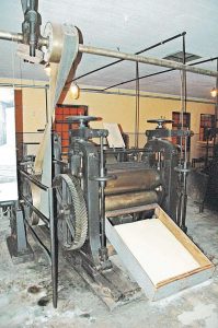 He de suponer que encontrar un resto de aquel esfuerzo fabril preindustrial referido en el maravilloso Museo del Traje de Madrid llamó poderosamente la atención de mi amigo José Luis. Después de todo, no descubre uno todos los días que ha sido vecino de una fábrica de lencería sin haber tenido el detalle de inspección tales diseños para la diversión solaz de la desvergonzada vida que gastamos los del Real Sitio cuando estamos en la penumbra. Para mi desgracia y la decepción febril de mi paisano, hube de explicarle aquello de la fábrica de lienzos asociada al mote de calandria que recibían las máquinas allí alojadas por el ruido infernal e indescriptible que regalaban a los que por allí vivían.