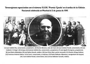 Entre los afortunados poseedores de los billetes de dos series vendidos en Torrevieja estaban: Lorenzo Ballester Carcaño, médico y yerno de José Bañón Braceli, que jugaba dos décimos; Pedro Ballester Albentosa, consignatario de buques, dos décimos; los hermanos Juany Antonio Celdrán Bru, comerciantes y propietarios, dos décimos; José Agulló Torregrosa, propietario del teatro, un décimo; Ramón Moreno, cabo de mar, dos décimos; José Pérez Marí, perito mercantil, un décimo; Manuel Carcaño, comerciante, un décimo; Francisco Aniorte Vera, comerciante, un décimo; Josefa Torregrosa, un décimo. Los siete décimos restantes se jugaron en participaciones de una peseta y de dos reales, entre estos se encontraban Ramón Ortega Galiana y el ciego José Calderón, que expidió varios décimos y jugaba dos pesetas.