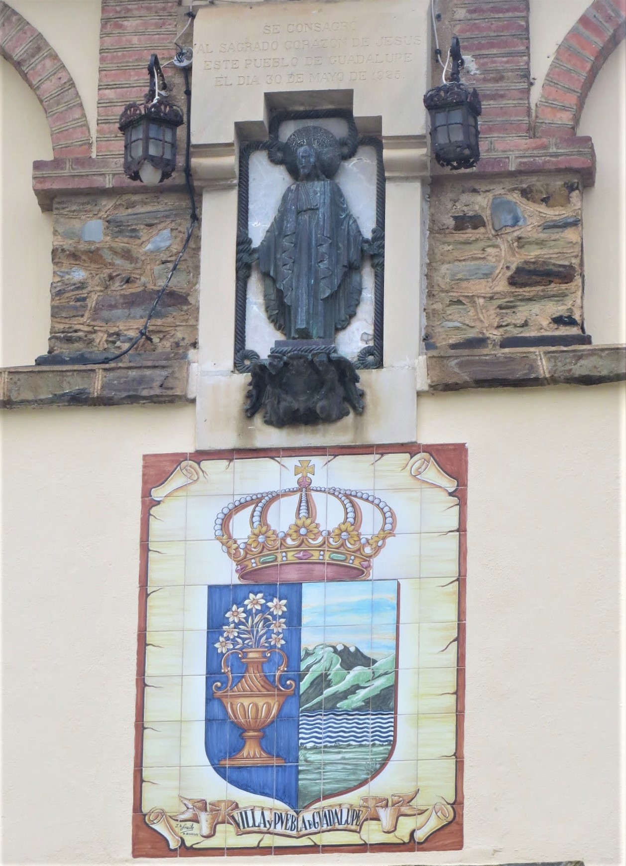 EL 30 de mayo de 1925, Guadalupe se unía como ya habían hecho otras muchas ciudades y pueblos a celebrar solemnemente la consagración de esta Villa y Puebla de Santa María de Guadalupe al Corazón amoroso de Jesús, honrándole públicamente con numerosos actos, cultos y efigie. Según recoge la crónica de este día (Antolín, 1925), dicha consagración fue revestida con una solemnidad y esplendor inusitada, acuciada por el celo de su párroco fray Lázaro Epelde, que desde varios días antes tenía al pueblo levantado: limpiando casas, arreglando calles, revistiendo portadas, izando arcos con verde follaje, banderas y gallardetes con guirnaldas de flores entrecruzadas, además de artística iluminación eléctrica por las noches, ofreciendo una imagen fantástica del arte y del entusiasmo de Guadalupe. La madrugada del 30 hacia las cuatro, parte del vecindario se unió al Rosario de la Aurora, que recorrió las principales calles entonando preciosas Avemarías, dando así un ejemplo edificante de religiosidad y fervor.