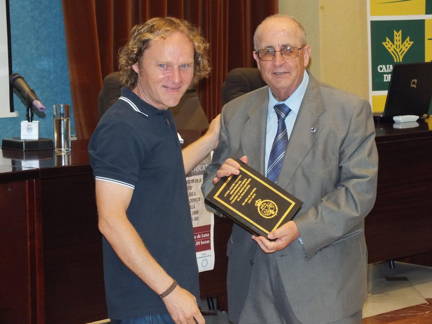A continuación Sergio Izquierdo Gutiérrez en nombre de la Comisión Organizadora del 400 Aniversario Fundacional, hizo entrega de otro ejemplar al autor del libro, José Antonio Martínez Ramos.