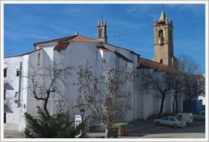 Vemos la parroquial de Cabeza la Vaca exenta en un espacio como señalado, individualizado para ella, pues así precisamente es.
