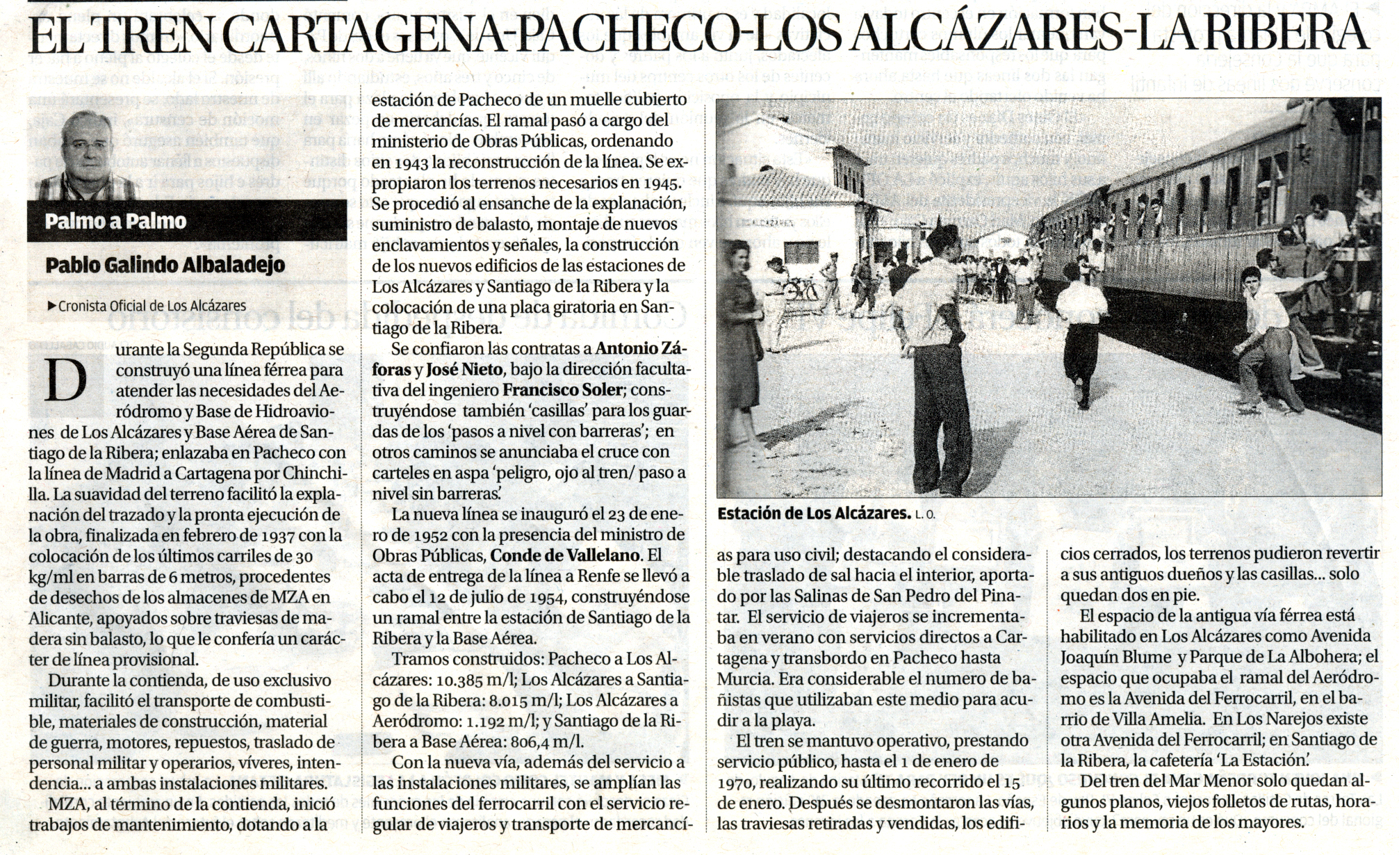 POR PABLO GALINDO ALBALADEJO, CRONISTA OFICIAL DE LOS ALCÁZARES (MURCIA)