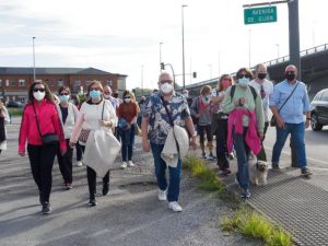 Desde Llaranes, la marcha tomo como punto de destino el centro de Avilés, en un trayecto que se prolongó por espacio de hora y media desde las once de la mañana. Con Sanz a la cabeza, las frecuentes paradas en puntos relevantes dieron a la cronista el marco necesario para impartir sus explicaciones y, así, componer en las mentes de sus guiados un cuadro preciso de la apariencia, vida e influencia de Avilés en aquella época.