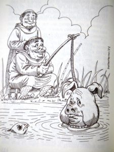 De todos modos, como la picaresca también llegó a los altares, se cita la habilidad forzada por la necesidad de un obispo gastrónomo que bautizó con el nombre de carpa a un pollo bien cebado, o la otra anécdota de aquellos monjes que arrojaban cerdos al río aguas arriba del cenobio, para rescatarlos más abajo tratando de convencerse de que eran “pescados”.