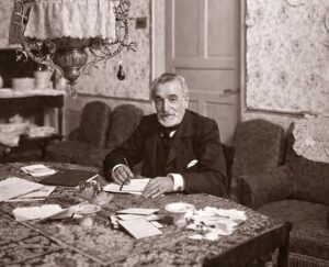 En un primer momento, nos detenemos en el reportaje que hizo el danés Christian Franzen y Nisser (1864-1923), rey de fotógrafos, cronista gráfico de la alta sociedad y reportero de las más importantes revistas ilustradas de la época. Él retrató “Ávila la casa”, la casa de España que estuvo en Ávila convertida en sede estival de gobierno cuando aquí, en la plaza del Mercado Grande, vivía Práxedes Mateo Sagasta. Y es que «Sagasta en Ávila es Sagasta en Madrid, es el Sagasta de todas partes», dice la crónica ilustrada con fotografías de la casa abulense y sus ocupantes en ambiente familiar.