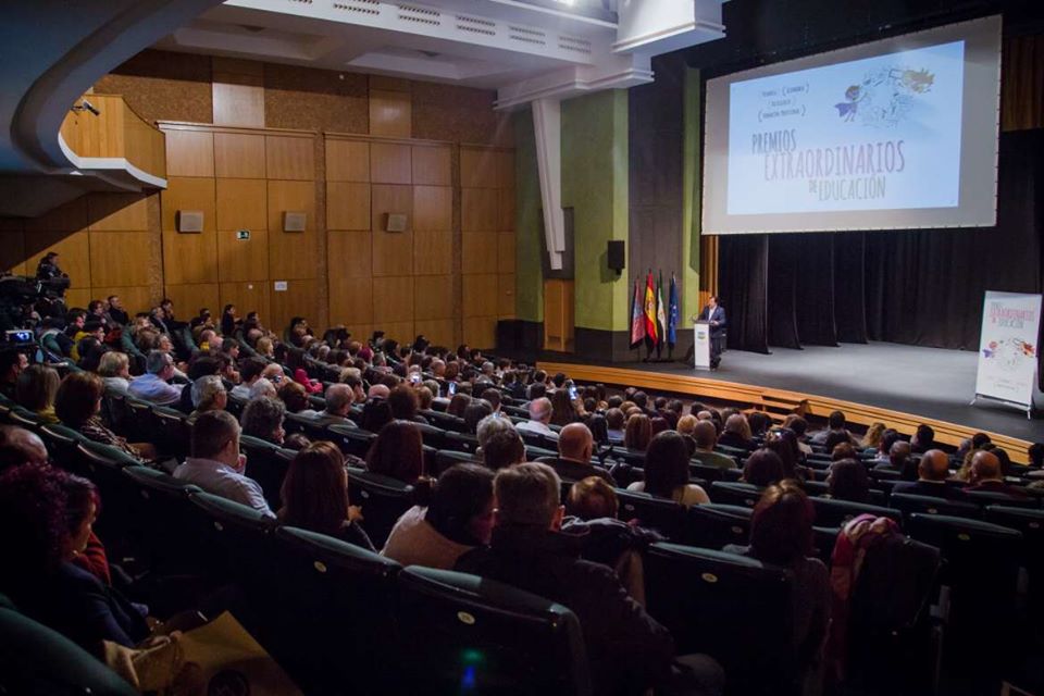 Ayer presenté el acto de entrega de los Premios extraordinarios de la Consejería de Educación y Empleo de la Junta de Extremadura. Fue en el Teatro Nuevo Calderón de Montijo. Acto que contó con la presencia del Presidente de la Junta de Extremadura, Delegada del Gobierno, Consejera de Educación y Empleo, Alcalde de Montijo, Presidentes de las Diputaciones de Badajoz y Cáceres, Diputados de la Asamblea de Extremadura, Presidente de la FEMPEX, Secretario General de Educación y Directores Generales, Concejales del Ayuntamiento de Montijo y Directores de Centros Educativos, entre otras muchas autoridades.