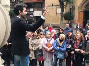Otra de las paradas fue la plaza Martínez Tornel, sede de la Inquisición, La Glorieta, hasta concluir en la plaza de Belluga. En ese recorrido, los participantes conocieron también la importancia de la industria de la seda para el desarrollo de la urbe, la historia de los apellidos más ilustres y sus miembros más reconocidos y diversas leyendas que perduran en la ciudad, como es el caso del Callejón del Cabrito, la cadena de la capilla de Los Vélez y el vuelo del demonio sobre la torre de la Catedral.