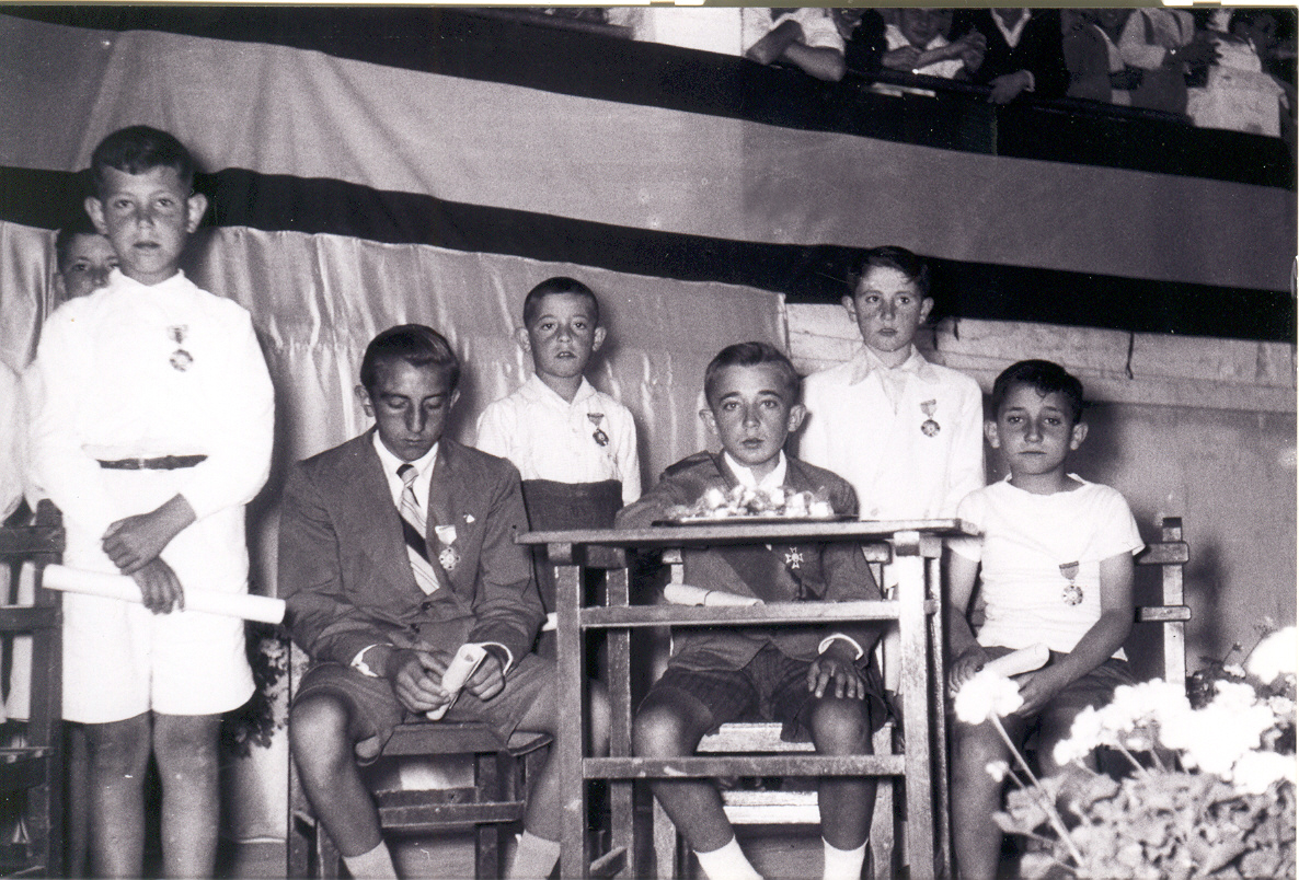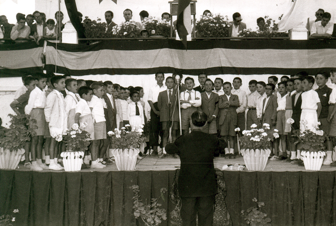 Se inició el acto con el saludo del alumno Emilio Martos Moreno y continuó con “Los Turistas”, cante festivo de Tomás Navarrete y Marcos Megina, ”Escudo de España” coro hablado acompañado al piano por Miguel Yeste, ”La Pedrada” poesía de Gabriel y Galán, recitada con un sentido del arte maravilloso por Tomás Navarrete. La tabla de gimnasia dirigida por D. Rogelio Lara, con los alumnos internos; “Gimnasia y Patria”, que dirigió D. Pascual Megina; el coro de externos dirigidos por el maestro Navarro, interpretando varias canciones y el coro de internos dirigidos por Don Rogelio Lara, con canciones populares; “A la Virgen del Recuerdo” poema recitado por Dionisio Rodríguez. Para finalizar se proyectó la película “La ciudad de los muchachos”.