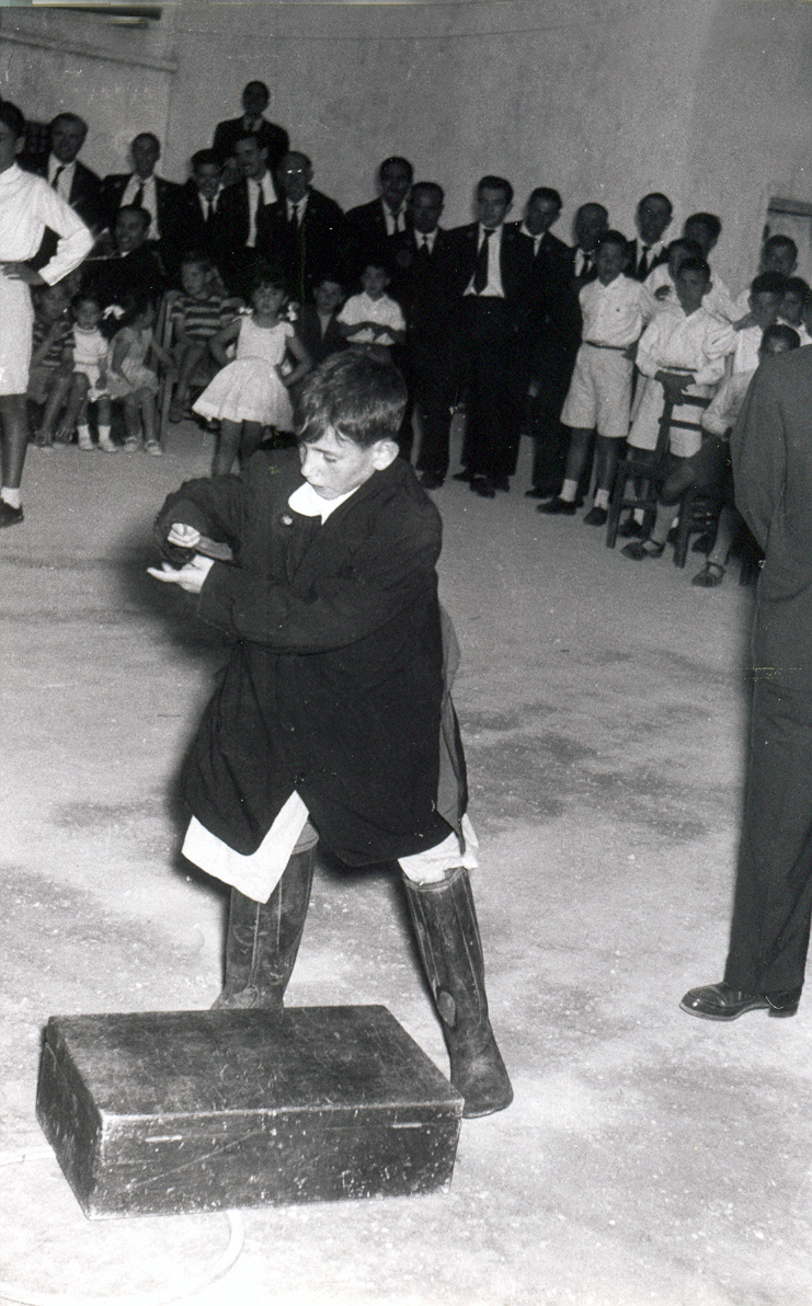Acto: Introducción por el alumno Manuel López Fernández, quien dio a conocer la colaboración de los Padres Jesuitas y Profesores: “Los limpiabotas” canto festivo acompañados por don Miguel Yeste, “Los motivos del lobo” poesía por Marcos Megina, siguió el coro de internos dirigidos por D. Rogelio Lara. Concierto de armónicas que interpretaron ”Susana”,” Asturias” y “El Sitio de Zaragoza”, dirigidos por el señor Francisco Navarro.