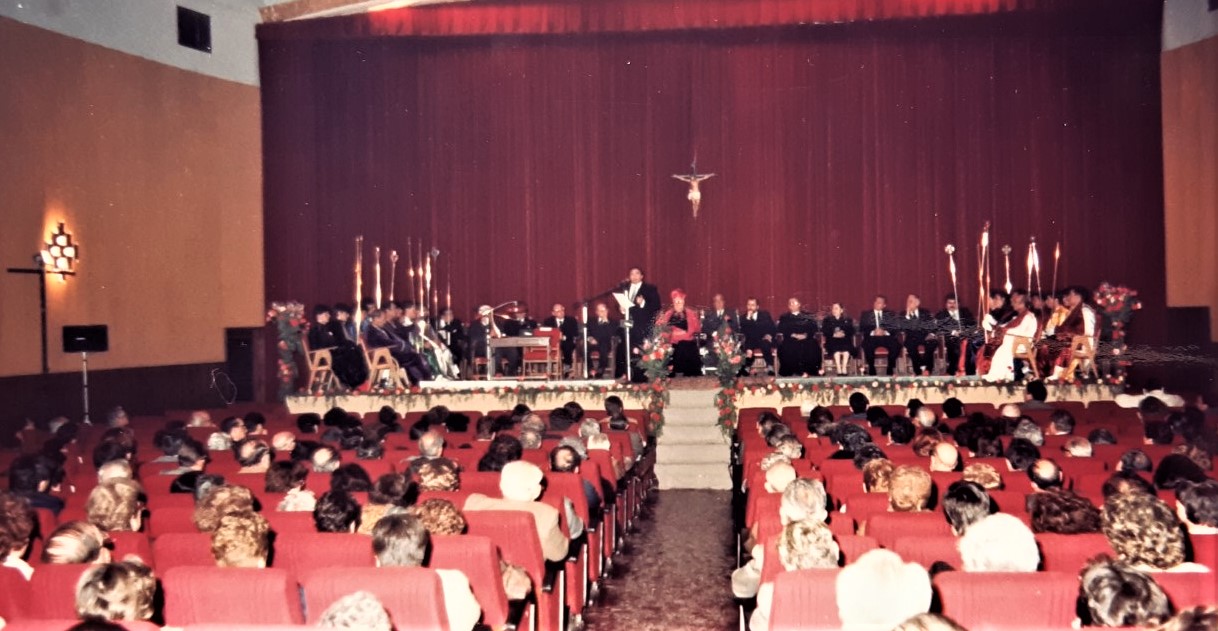 Llegó el 15 de marzo de 1985, y se cumplió una de las mayores ilusiones de mi vida: glosar el Pregón de la Semana Santa. Tuvo como marco, el Cine Avenida y coincidiendo con el acto se programó un homenaje por parte de la Junta Mayor de Cofradías y Hermandades a Eladio Belda Irles, muy buen amigo de mi familia. Asistió el Obispo Pablo Barrachina y Estevan, y Emilio Bregante Palazón, como presidente me hizo entrega del salario que abonaban por realizar la Glosa: el escudo de Orihuela que me fue impuesto por el alcalde Vicente Escudero Esquer.