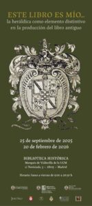 Desde hoy, día 25 de septiembre, y hasta el próximo 20 de febrero de 2026, tendrá lugar en la Biblioteca Marqués de Valdecilla de la Universidad Complutense de Madrid la exposición titulada Este libro es mío… La heráldica como elemento distintivo en la producción del libro antiguo.