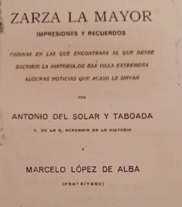 El 28 de julio de 1928, Feliciano Rocha Pizarro firma, como vicario general de la diócesis de Coria el “imprimi potest” del libro “Zarza la Mayor. Impresiones y recuerdos”, de Antonio Solar y Taboada.