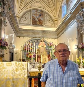 Felicidades a las amigas que se llaman Rocío y a los devotos, romeros y rocieros de esta advocación. (La fotografía fue tomada en mi visita, el miércoles 25 de mayo de 2022, cuando la Virgen vestida de Pastora se encontraba en la iglesia parroquial de Ntra. Señora de la Asunción de Almonte, trasladada a la aldea cuatro días después, el domingo 29).