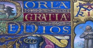 Este año la imagen seleccionada se trata, de una página de la Ejecutoria de Hidalguía en propiedad y a pedimento de Antonio de Oro Campo, vecino y alférez mayor de la villa de Carrión de los Condes, despachada en Valladolid a 5 de septiembre de 1579. Documento perteneciente al Fondo de Colección documental, sección Genealogía y Heráldica. Documentos en el Archivo de la RMR 2021, nº35