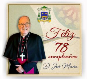 Hoy felicitamos a nuestro querido Obispo, D. José María, en el día de su 78 cumpleaños . Rezamos por él para que el Señor le llene de bendiciones y lo encomendamos a la Virgen María para que siempre lo proteja.