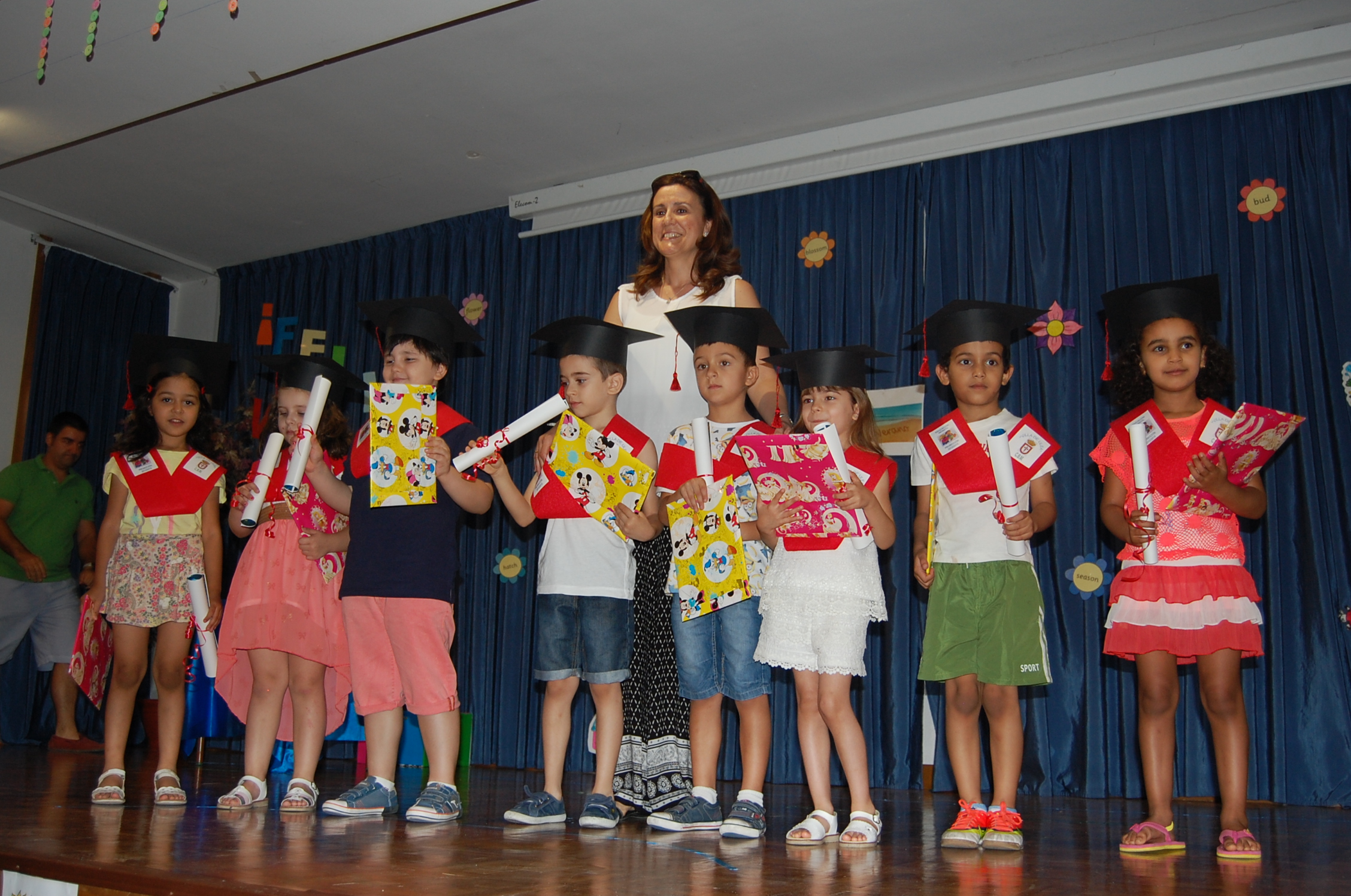 Al acabar la actuación de los alumnos de 6º curso, a los que se les dio una calurosa despedida del colegio, se les hizo la imposición de la orla y birrete a los niños de 5 años, al pasar de infantil a primaria y, recibir por tal motivo el título acreditativo.