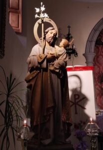 Tengo varios amigos en Facebook que se llaman José o Josefa, y muchos otros como José Antonio, José Luis, José Alfonso, Francisco José, Juan José, José Daniel, José Manuel, José María, José Ignacio, Antonio José… Para todos, mi más cordial felicitación con motivo de la festividad de San José, Día del Padre y Día del Seminario. Que este día sirva para unir aún más a todas las familias. Talavera la Real y Calamonte, por proximidad tienen a San José por patrón. Talavera la Real lo celebra desde el siglo XVII, festejándolo con luminarias la noche de su víspera. En Calamonte celebran su feria y fiestas patronales, en la que se hace próxima y afectiva la expresión: ¡San José bendito (La fotografía corresponde a la imagen de San José del convento de las clarisas franciscanas de Montijo).