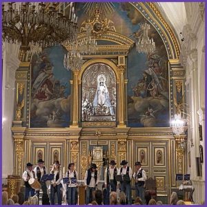 Tras las palabras de saludo, de la Alcaldesa Ana Guarinos, que se ha mostrado feliz de hablar ante la Alcaldesa Perpetua de la Ciudad, Santa María de la Antigua, han actuado la Ronda de la Alegría , del Barrio del Alamçin (en la fotografía), la Ronda de la Rosaleda, y el Grupo de José Antonio Alonso.