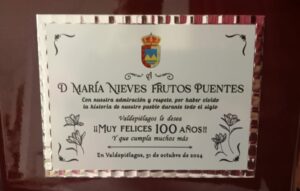 Nieves fue homenajeada el 31 de octubre de 2024 por haber sido parte de la historia de Valdepiélagos durante un siglo.