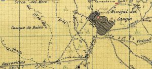 Lo primero que llama la atención es el nombre del pueblo: Hinojal del Campo. Después decir que solo he puesto aquí una parte de todo el mapa, ya que así se puede ver mejor el núcleo poblacional y algunos nombres de caminos y otros lugares de los alrededores, como el cementerio, el camino de Garrovillas y la Cerca del Moro o el Campo de Baila, todos hacia el oeste.