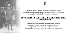 Sábado 25 de octubre en Alhama de Murcia, daré una conferencia sobre los librillanos en la guerra de Marruecos, que tan desconocidos son en la población.