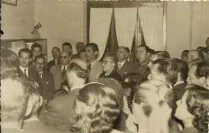 En el centro el alcalde y mestro Emilio Blanco Vega y -a su izquierda- el que en ese momento era cura coadjutor, Ramón Álvarez Fuentes.