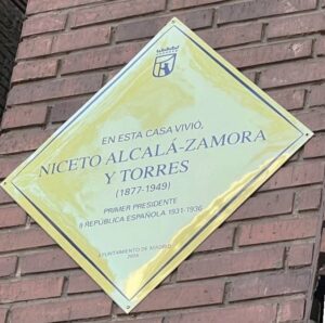 Un grupo numeroso de admiradores del ex presidente del Gobierno de la Ii Republica D. Niceto Alcalá-Zamora coincidían el pasado día 14 de Abril en una calle de Madrid , aniversario de la proclamación de la II República en el acto de colocación de una placa conmemorativa en el edificio donde estuvo su casa en la calle “Paseo del General Martínez Campos nº 32.