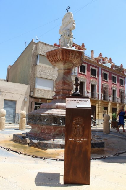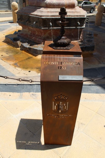 Las concejalías de Cultura y Turismo y Servicios DEL Ayuntamiento de Totana han instalado una réplica en bronce de la Fuente Juan de Uzeta, también conocida como Fuente de la Plaza, que contará con un código QR (código de barras bidimensional cuadrada que almacena datos codificados) con un enlace a un sitio web donde se dará información de interés sobre este monumento.