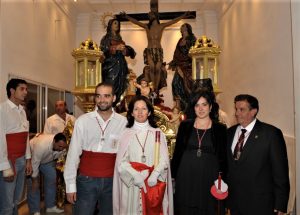 A esta profesión de vivencias diarias, le sumamos el amor que José Adolfo ha sentido por la Cofradía del Cristo de la Expiración, y por las imágenes que conforman el paso del titular. Con motivo de una ampliación del trono, que realizó nuestro laureado artista, Paco Luis Martos, las imágenes del Cristo, la Virgen, San Juan y María Magdalena, fueron depositadas en casa de José Adolfo, en la habitación de sus padres, en el mismo edificio del horno. Durante este largo periodo de tiempo, los diálogos con todas las imágenes, las peticiones, los agradecimientos, los silencios, miradas, llantos y alegría fueron confidentes en el silencio de la madrugada, al iniciar o finalizar el trabajo. Una larga amistad, que ha tenido su respuesta en acogerte a su lado como los acogiste y veneraste en tu hogar.