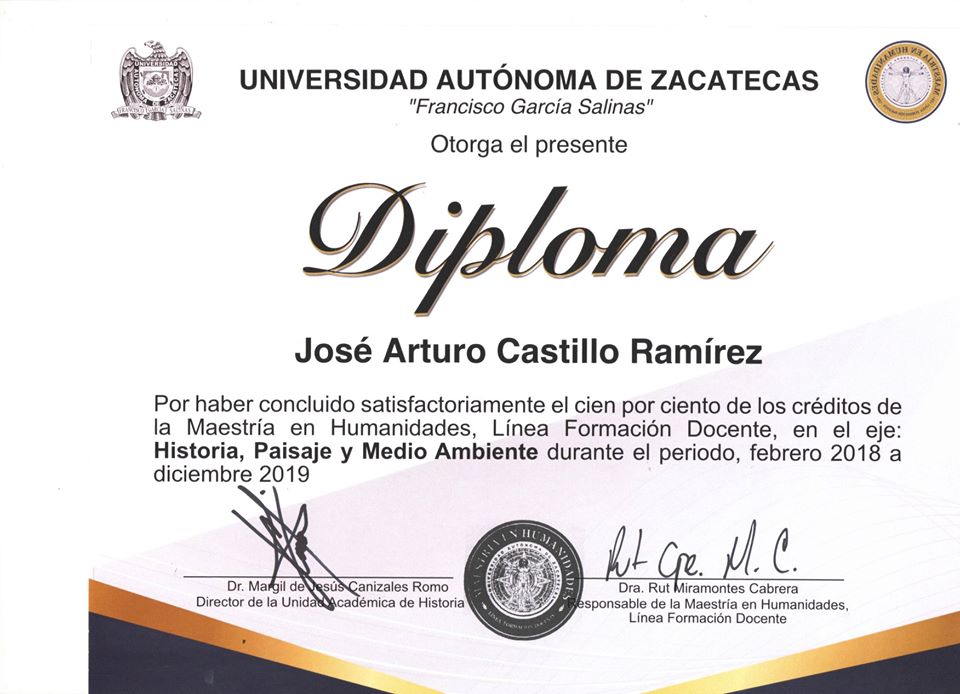 Nuestra felicitación y reconocimiento a un cronista mexicano ejemplar: José Arturo Castillo Ramírez (Río Grande, Zacatecas), quien el pasado partes se graduó en la Maestría en Humanidades de la Universidad Autónoma de Zacatecas.
