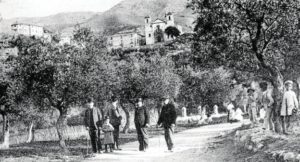Instantánea antigua de la subida al santuario desde el camino de Algezares (Murcia)