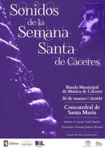 El concejal de Cultura, Jorge Suárez, ha señalado que “nuestra Banda Municipal ofrecerá un concierto bajo la denominación ‘Sonidos de la Semana Santa de Cáceres’, con la dirección de Francisco Javier Cortés Sánchez y presentado por el cronista oficial Fernando Jiménez Berrocal”.
